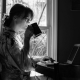 It was the woman by the window who made her stay - the woman who, by chance, or perhaps something else entirely, was sitting perfectly still, and perfectly framed between the ever disappearing ribbons of steam.
